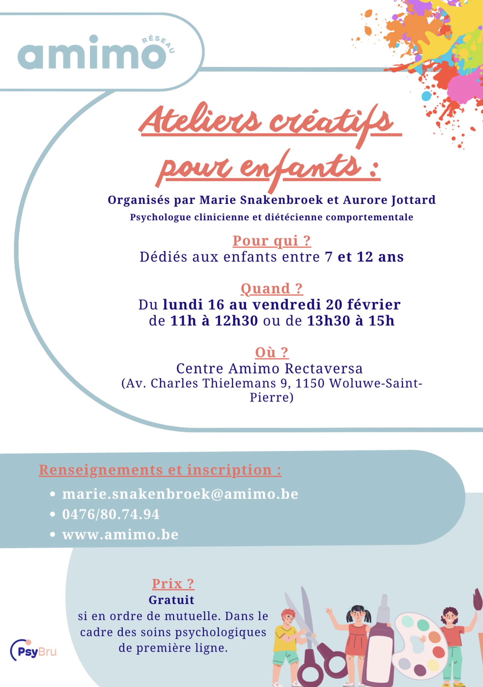 Prochaines dates: Du lundi 16 au 20 février de 11h à 12h30 ou 13h30 à 15h.
